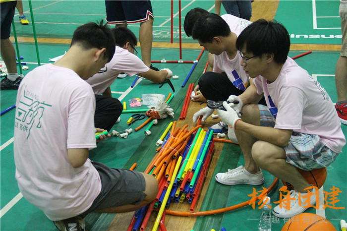 蘇州核舟拓展為國網蘇州供電量身打造了一套適合他們的活動方案——快樂向前沖,這是一個趣味性、組合型的挑戰項目,把趣味、互動、與團隊合作緊密結合在一起,通過對項目的挑戰,達到熔煉團隊的目的。