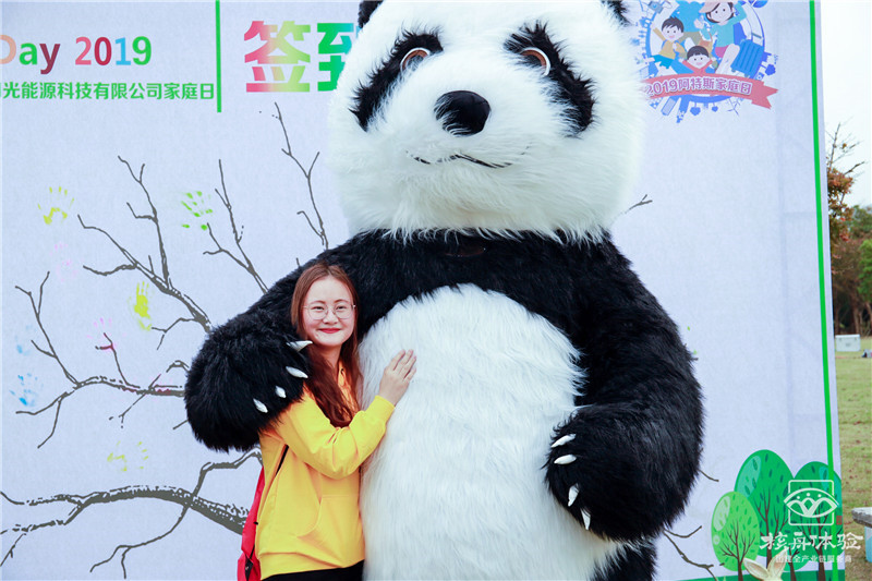 剛進場這位小姐姐就被我們的大熊貓吸引過去拍照了。嘻嘻,順便簽到墻上按個手印唄!