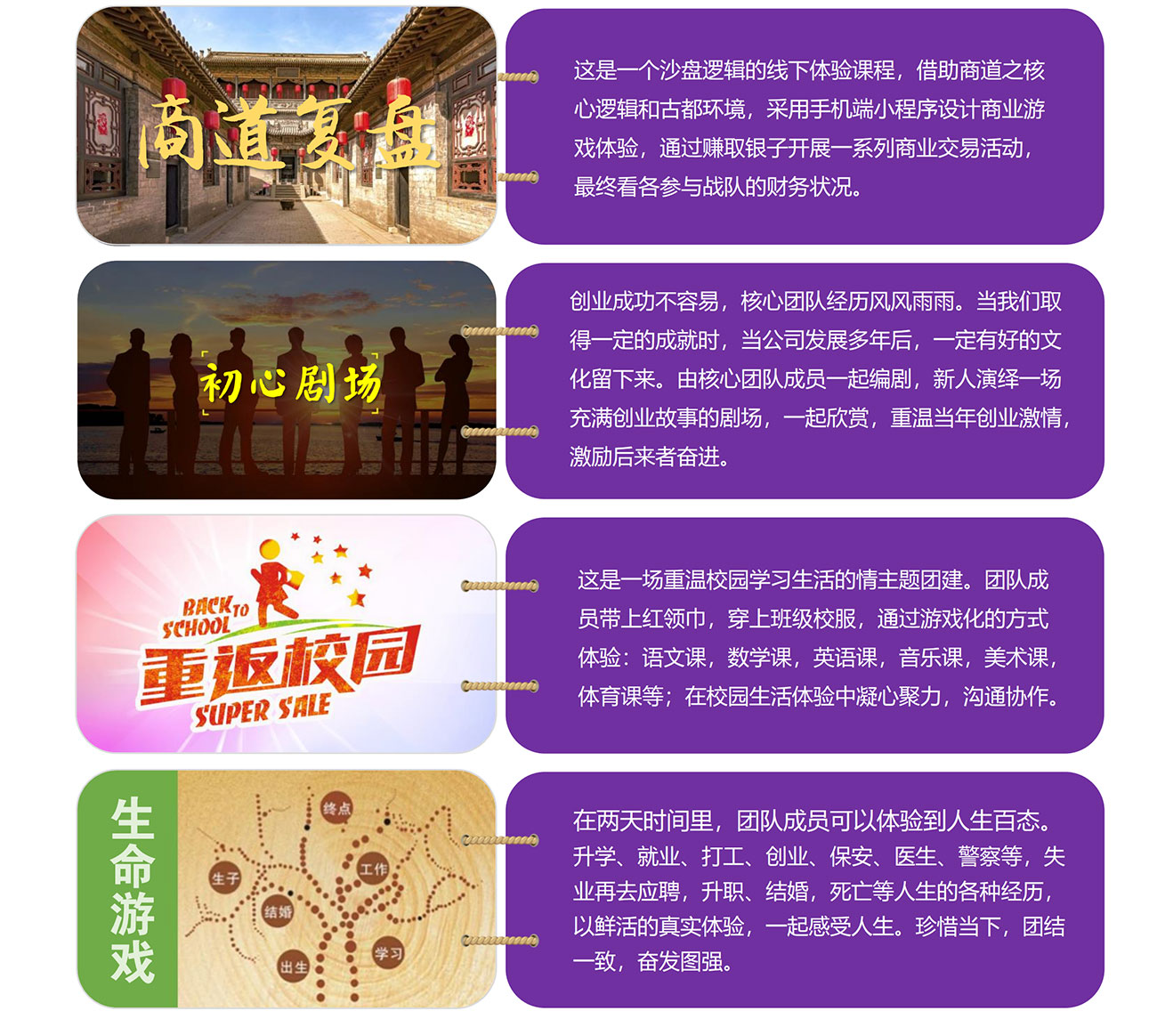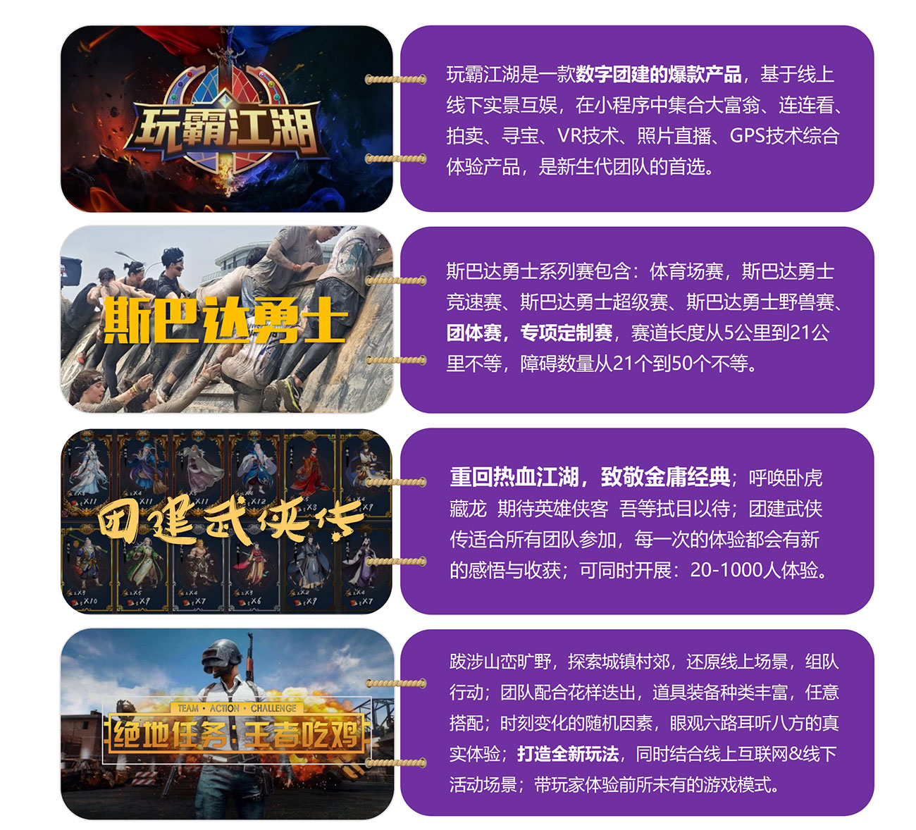 場景1:基于線上線下實景互娛,在小程序中集合大富翁、連連看、拍賣、尋寶、VR技術(shù)、照片直播、GPS技術(shù)綜合體驗產(chǎn)品,是新生代團隊的首選。
