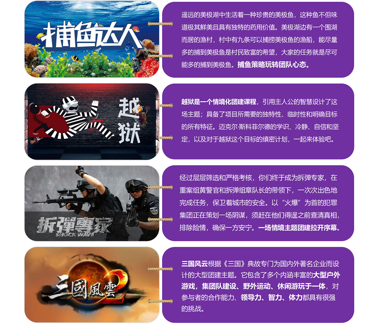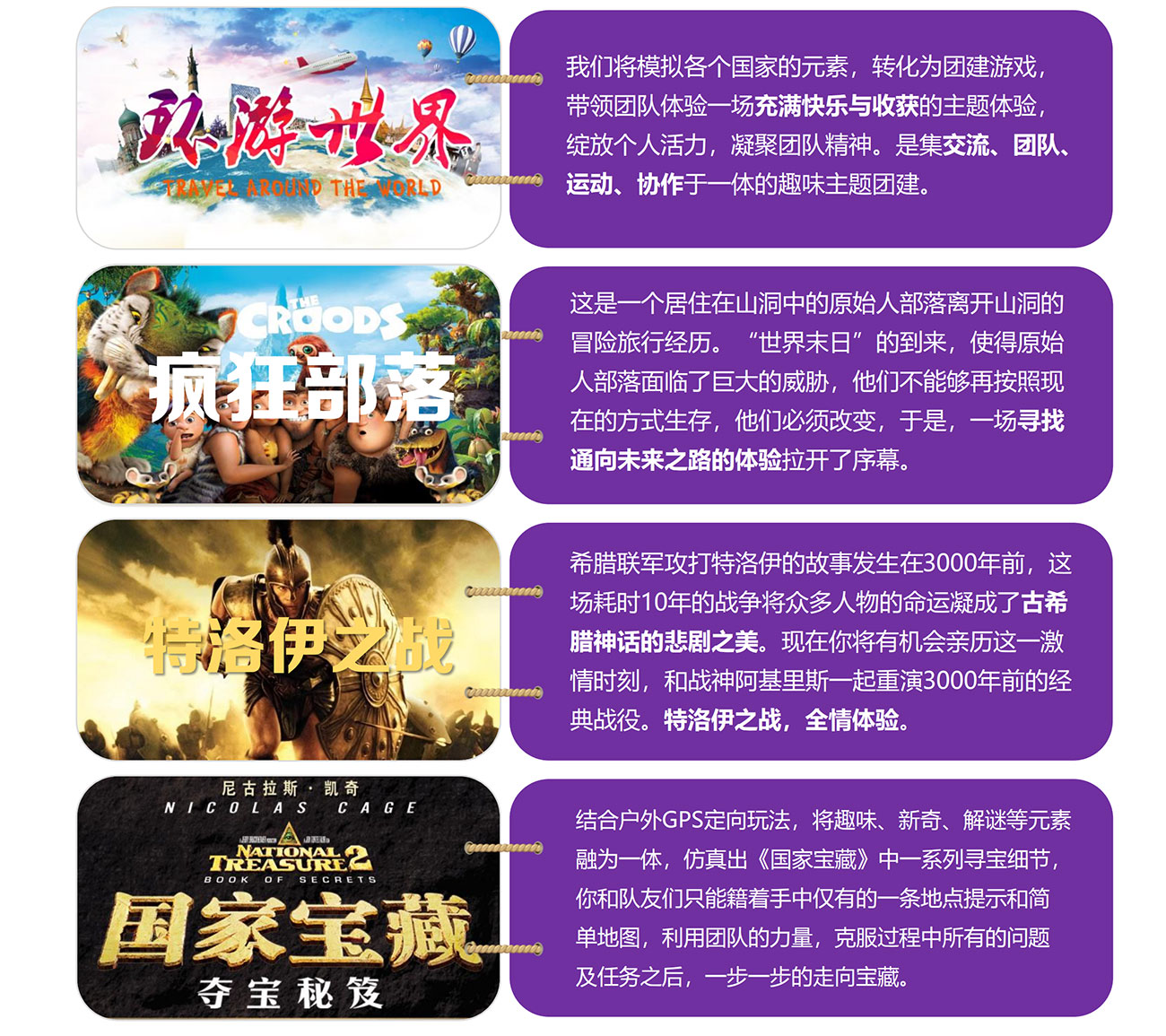場景2:我們將模擬各個國家的元素,轉(zhuǎn)化為團建游戲,帶領(lǐng)團隊體驗一場充滿快樂與收獲的主題體驗,綻放個人活力,凝聚團隊精神。是集交流、團隊、運動、協(xié)作于一體的趣味主題團建,更多請看下面…